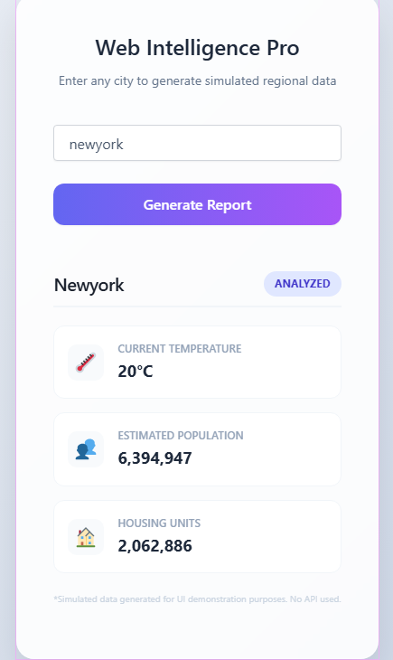 Once you visit the website, you will be greeted by the Web Intelligence Pro dashboard. The interface is designed to be clean and distraction-free, featuring a soft gradient background for a premium experience.